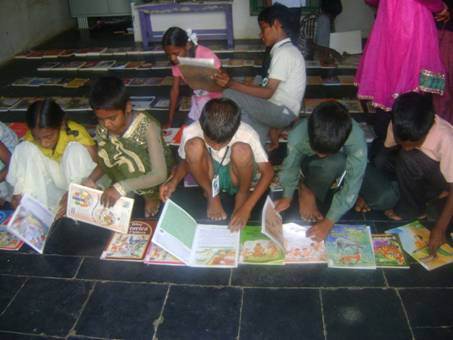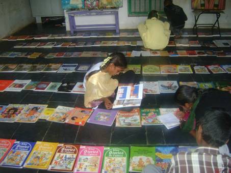 Im August fand eine Ausstellung der mittlerweile mehr als 1000 Buecher statt. Alle Raeume der Schule wurden genutzt, die Buecher wurden - nach Themenbereichen sortiert - auf den Boden gelegt. So war es moeglich, sie in Ruhe zu betrachten und darin zu schmoekern. Es gibt zwar einmal woechentlich einen Buechereinachmittag fuer die Schuelerinnen, aber aufgrund der raeumlichen Enge in der alten Schule ist es nicht moeglich, alle Buecher auf einmal wahrzunehmen und zu wuerdigen.