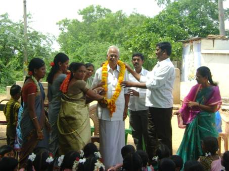 Am 5.9. wurde der Teacher’s Day gefeiert. Unser Ehrengast, der pensionierte Schulleiter der Regierungsschule in Mudigubba, sprach ueber gewaltfreie und liebevolle Paedagogik. Er wurde mit einer Blumenkette geehrt.