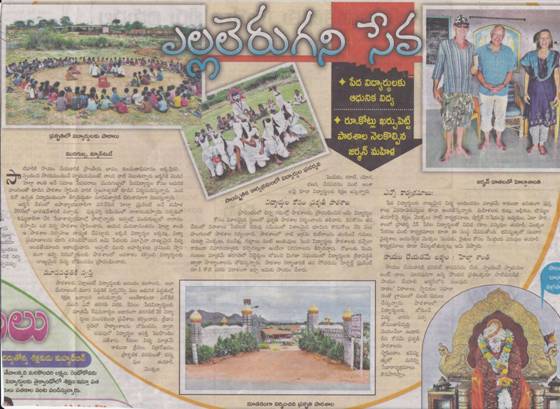 On August 3rd, Friendship Day in India („Raksha Bandan“) a big article about the Shanti Ananda Nature School Project was published in “Eenadu” – in the whole Anantapur District. Reporter and educated teacher Calendar who wrote a very positive article already in November 2009 gave many valuable pieces of information about aims and goals, teacher training, building measures and future plans. We understand this article as an appreciation for our pedagogical work; and we are happy that all Anantapur District knows about our model school now...