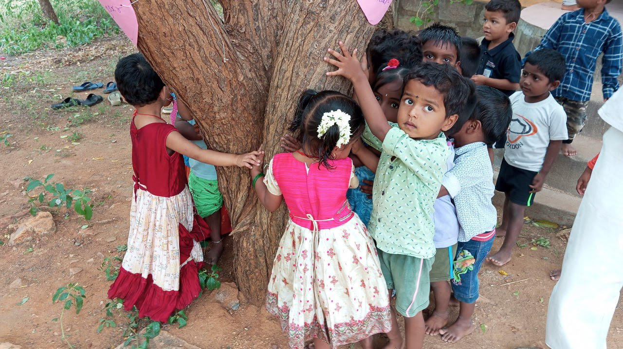 The first mini project week in the new school year 2024/25 - on the topic of 'trees' - took place from July 18th to 20th. Headmaster Raja Sekhar (whom we affectionately call 'Heartmaster’) suggested dedicating the last day, on which the results of the team work are presented, to hugging trees. Here he describes how he came up with this idea: