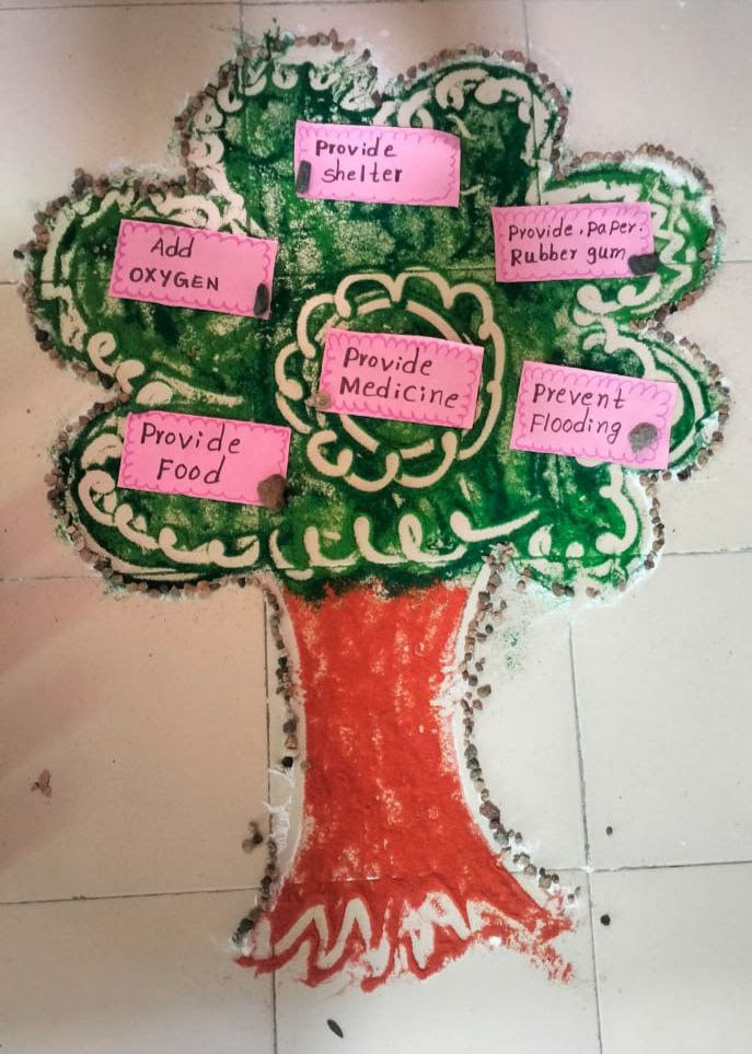 During the three-day mini project week, many different activities were held around the theme of 'trees'. The children were active in five groups (7th grade and LKG, 6th grade and UKG, 5th and 1st grade, 4th grade – solo - and 2nd and 3rd grade): They researched information about trees and wrote the results on large pieces of cardboard, they painted, made crafts and created imaginative installations on the floor. Small exhibitions were set up in some classes - it was three days of fun activities around the theme. New trees were also planted on the grounds.