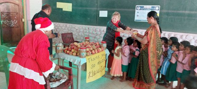 Am 7. Dezember fand eine kleine Nikolaus-Feier statt, ermöglicht durch eine Spende von Klaus (Premananda) aus Deutschland. Er hat vor einigen Jahren Bhajan-Unterricht, Musikunterricht und Workshops an unserer Schule gegeben! Santa Claus bzw. ‘Santa Babu’ (unser Wissenschaftslehrer) verteilte Äpfel und Süßigkeiten an Kinder und Kollegium. Dies war die erste Feier nach langer Zeit – aber wir planen, im Januar eine kulturelle Veranstaltung zu veranstalten! Der letzte war im Jahr 2020, vor fast 2 Jahren…