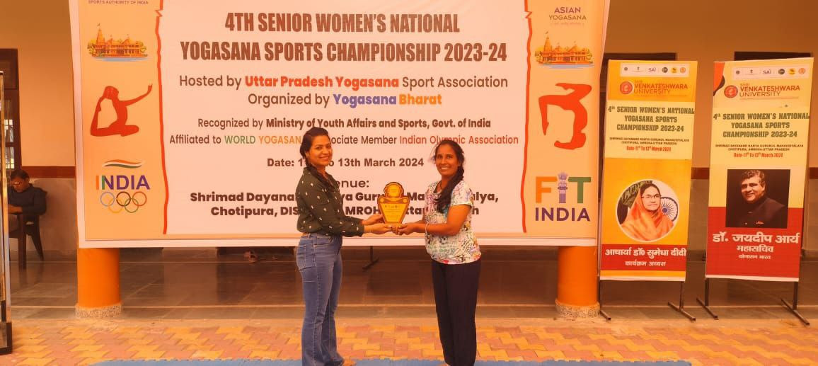 Darum bin ich hocherfreut, begeistert und glücklich über einen phänomenalen Erfolg unserer Englisch- und Yogalehrerin B. Prabhavathi: sie hat im Yoga bei der 4th Senior Women’s National Yogasana Sports Championship im März 2024 in Delhi den 1. Platz errungen! Das ist ein spektakuläres, grandioses und einfach wundervolles Ergebnis und ein Höhepunkt in unserem Schulleben. Ich bin außerordentlich stolz auf sie und freue mich riesig, dass ihre große Hingabe, ihr außerordentlicher Einsatz für Yoga sowie ihre Disziplin und harte Arbeit zu diesem Ergebnis geführt haben.